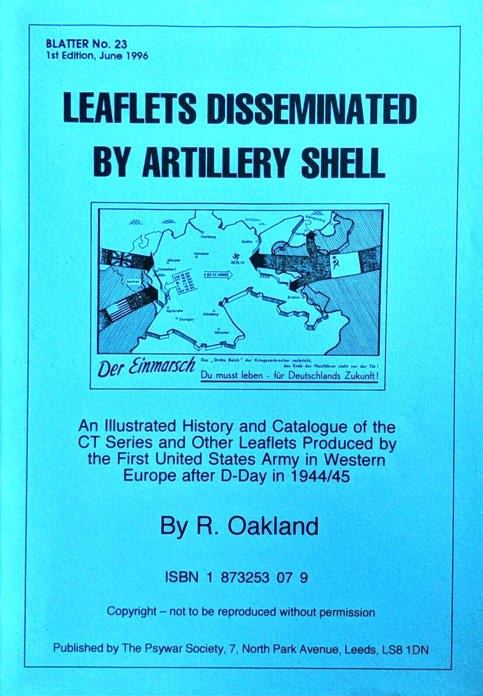 Another “newspaper” leaflet dropped on the Allied troops was four pages long and entitled The Other Side. In fact, not only was it dropped by German aircraft; there are numerous instances when it was placed on a V1 rocket and fired against England. There are no German records of leaflet dissemination by V1 rocket but we know that five only issues of “The Other Side” were printed, probably from November 1944 to February 1945. The leaflets are mentioned in R.G. Auckland’s, V1 Rocket Propaganda Leaflets 1944-1945, the Psywar Society, 1963.