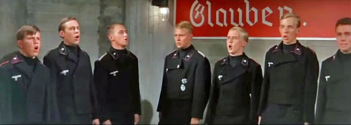 Perhaps the best scene in the film is when the German tank commander has doubt about the ability of the young German tankers to fight the war. He says "Young boys" several times. The young tankers break into the Panzer Leid, the Song of the Panzers. The commander is convinced. He says, "It can be done!"