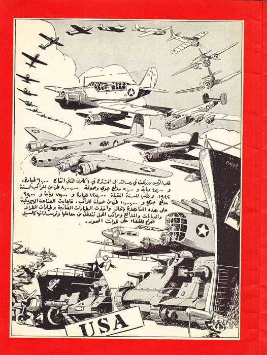 We cannot say with absolute authority that this 14-page comic was produced by OWI. It certainly looks like one and we could ask who else could have printed it. Normally OWI material has a code, and this comic has none. However, it clearly is aimed at introducing President Franklin D. Roosevelt to the Arabic speaking people. The early pages depict Roosevelt’s life from a child, through manhood, to eventually becoming the president of the United States. The last few pages end by showing the strength and power of American manufacturing, “the Arsenal of Democracy” during World War II. I want to thank my friend Saad Khan, an independent publisher of art-related books, for sending me this propaganda comic.