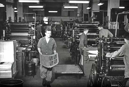 Equipped with the latest type of offset presses, the Reproduction Company prints the output of the Headquarters Company Operations Section. Company personnel are trained to repair and use any press they might capture in an enemy country. Though it is not the unit's main function, the company can help tactical units when they need a big press run.