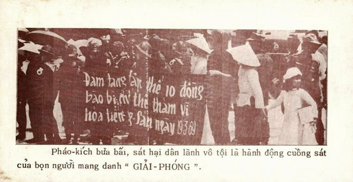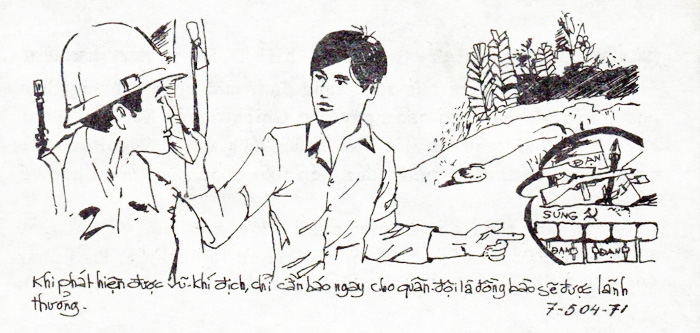 "Viet Cong harassed, disturbed, and killed innocent children and people. Viet Cong tactics are to kill people. They are cowardly and afraid to attack the Vietnamese soldiers at Tra Bong."