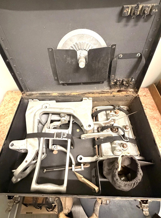 These are 5 x 8-inch platen presses. The owner thought that the parts were interchangeable with a Kelsey Standard 5 x 8-inch platen press. This one is much lighter than a cast iron press, weighing only about 22 pounds. They came with a traveling suitcase. Curiously, in the Vietnam war several wooden printing presses were captured from the Viet Cong.