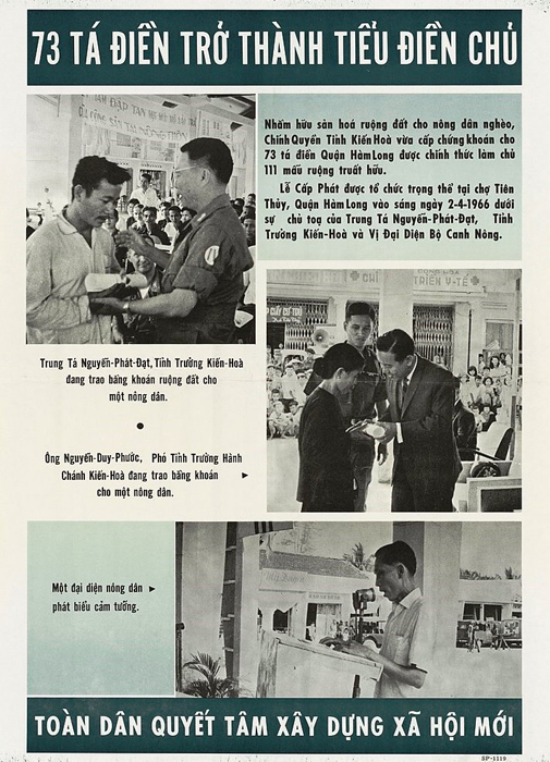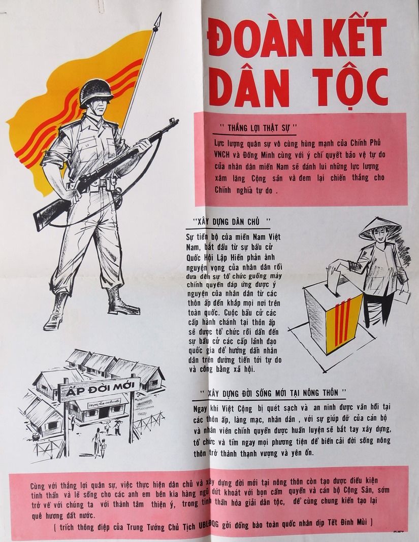 We list 438 posters produced by the Joint U.S. Public Affairs Office (JUSPAO) for use in psychological warfare activities supporting the Government of South Vietnam (GVN) during the Vietnam War. The poster themes and designs reflect the fierce competition between the two Vietnams, North and South, to “win the hearts and minds” of the South Vietnamese public. Posters are grouped under ten main themes reflecting JUSPAO propaganda priorities.