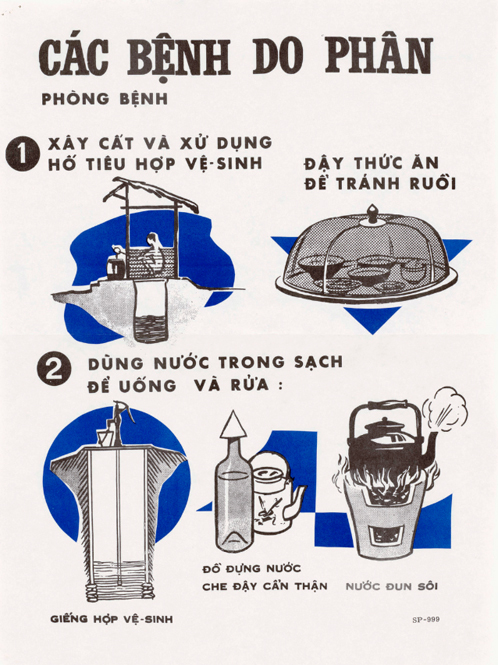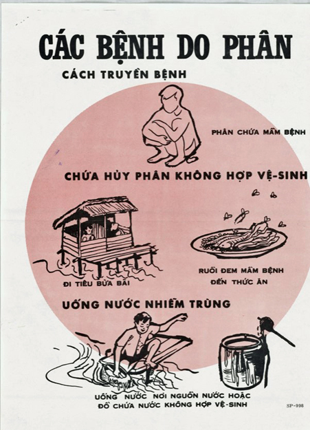 Another JUSPAO poster meant to help the people of Vietnam. This one shows sick and deceased Vietnamese all infected with cholera. The images are quite striking and pull no punches. The text is: