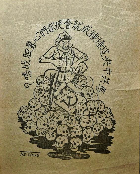 C. C. Too ingeniously developed the light yellow sand and the deep brown earth colors for leaflets to be thrown near streams and rivers to enable the comrade to steal a glance at them without undue attention.