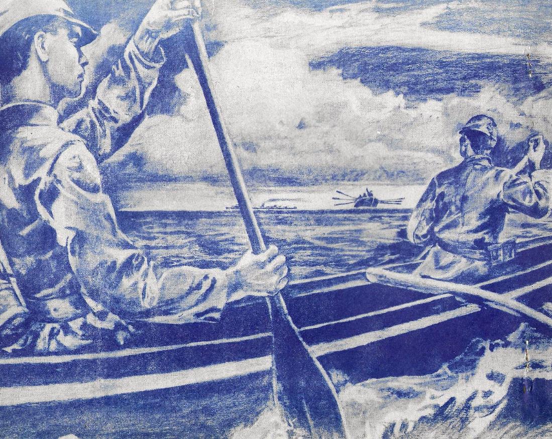 White bombs is a potent term for OWI leaflets aimed at the enemy and adroitly timed to strike at psychological moments. Sometimes millions of impressions are made of a single strategic piece to get one vital idea across. Flyers wing their way deep into enemy territory on these hazardous missions and leaflet barrages have been known to last for days. Another way of firing these propaganda fragments is to load them into shells and fire them via artillery directly into enemy lines. Where two languages are spoken in a country, bi-lingual leaflets are made up. Another form of leaflet is the safe conduct pass which tells the enemy in his own tongue: “Bring this leaflet along to the nearest American outpost and you will save your life.” Such tactics have done much to bring in prisoners and have saved countless American lives. Oftentimes before an invasion, leaflets are dropped informing people: “The Americans are coming. They are your friends.” These are Heaven-sent words of hope to oppressed peoples and induce considerable timely assistance. One of our most brilliant OWI jobs was a surrender leaflet made to simulate the kiri leaf. It capitalized cunningly on the Japanese superstition that its premature fall was an omen of bad luck. The leaflet also bore the words: “American bombs bring misfortune.”