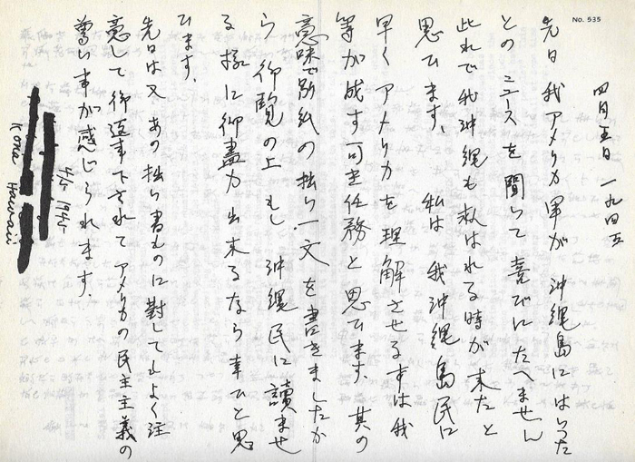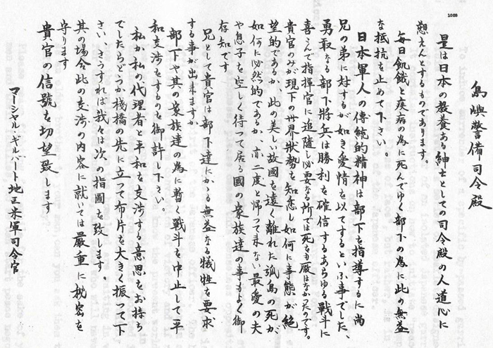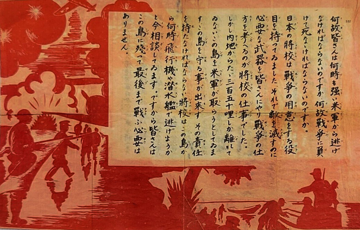 I heard one of the enemy talking busily in Japanese over a loud speaker. He was probably telling us to come out. What fools the enemy are! The Japanese Army will stick it out to the end. This position must be defended with our lives.