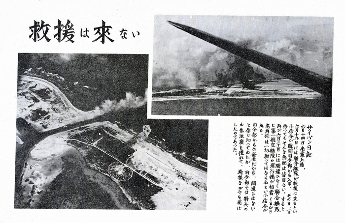 The Americans landed on 14 June. On 19 June, word was passed from higher headquarters that the Combined Fleet was coming to help. All that day we waited, yet nothing of the sort occurred. Then on the 21st of June word was passed again that, without fail, the Combined Fleet and planes of the First Air Fleet would arrive in considerable number, and so no antiaircraft weapons must be fired. It was word from headquarters, and so we believed there could be no mistake. And yet, this story was manufactured at headquarters, for the morale of the officers and men.