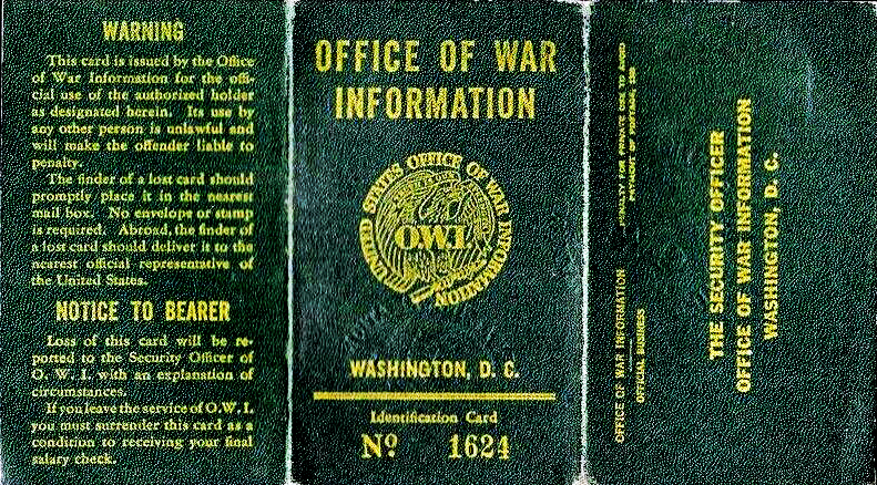Most OWI agents scheduled for overseas duty were first sent to the University of California where they were given a course in history, regional geography, and racial customs. They were taught various forms of propaganda, and just as we teach today, they were told that, “The best media for propaganda is the human voice. The closer you get to the people you want to convince, the better it is.” The OWI did not censor itself. It simply worked under certain guidelines. As mentioned earlier, the U. S. Navy was in charge of censoring OWI output. One lecturer mentions that he is so programmed not to use the word “radar” that he even has difficulty in mentioning it to the students. If you have been trained never to point a weapon at a human in training, you will understand his difficulty. Even knowing that the weapon is empty, the old taboos kick in.