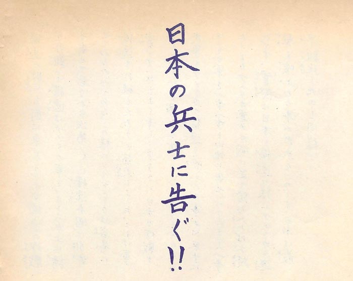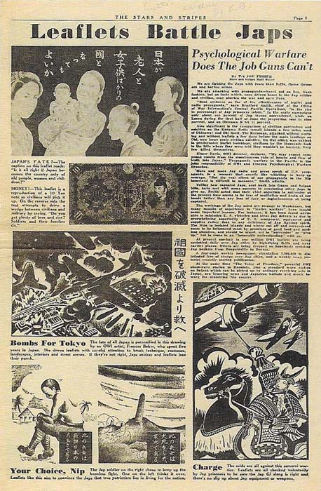 The use of psychological warfare in the Pacific is an interesting subject and a number of books comment on it. Probably the most concise is You Can't Fight Tanks with Bayonets, Allison B. Gilmore, University of Nebraska Press, Lincoln, 1998. Some of her comments are: