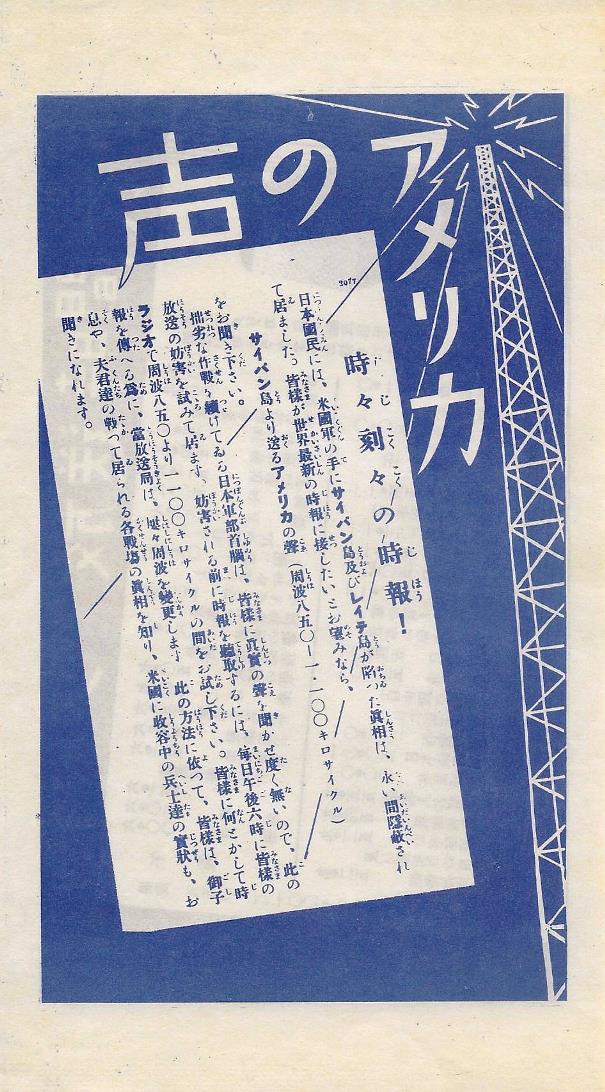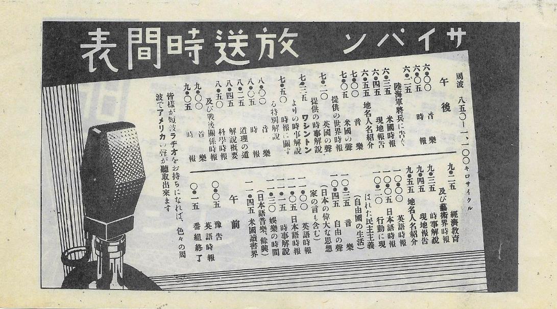 Since all the short-wave sets in Japan were confiscated by the government and the former possessors severely punished, the Japanese people had no way to hear the broadcasts from America. I believe only a few officials had sets powerful enough to get the broadcasts from overseas.