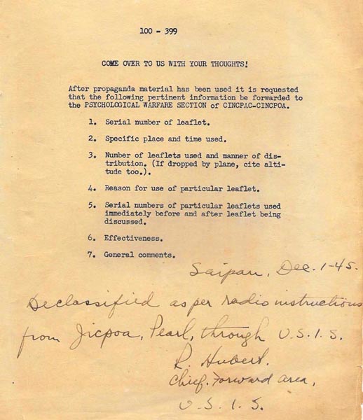The Leaflets in this Article are Declassified as per Radio Instructions from the Navy