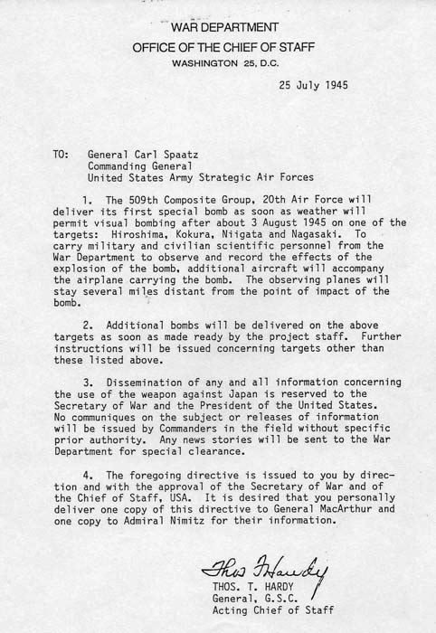 The war in Europe is now over and for the first time we can concentrate our overwhelming strength on Japan.  We no longer need to divide our forces and supplies. All of our resources, not just ten percent, will be in the battle against you. You failed to stop us earlier. Do you think you can stop us now?