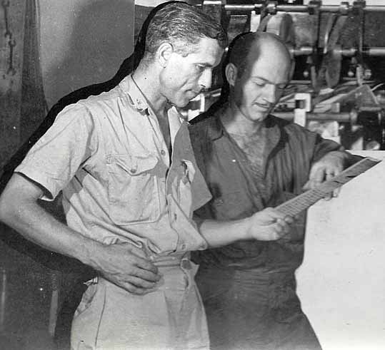 Central Pacific Operations began its leaflet production as soon as headquarters was established in April 1944. Working in close collaboration with Joint Intelligence of the Central Pacific Ocean Area, the staff produced a total of 11,665,000 copies of leaflets and newspapers during its seventeen months of operations…Texts and artwork for special leaflets, prepared in Honolulu, were transmitted by radiophoto to Saipan for printing and distribution….