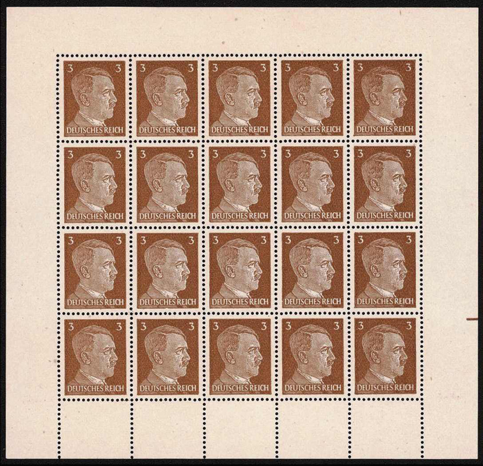 There are already numerous fake blocks of four of the American OSS "death's head" parodies of the 12 pfennig Hitler stamp. They appear in various colors, perforated, imperforate, and on covers.