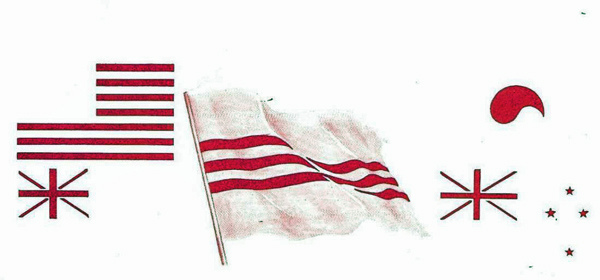 An interesting document exists that apparently depicts a proof specimen of the back of the 5-flag leaflet with block Korean text. Beneath the yellow text-box to the right of the soldier and Viet Cong member, there is the signature of an American who apparently approved the vignette of the leaflet.