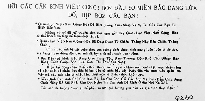 VIET CONG SOLDIERS! THE NORTHERN BOSSES ARE DECEIVING AND CHEATING YOU!